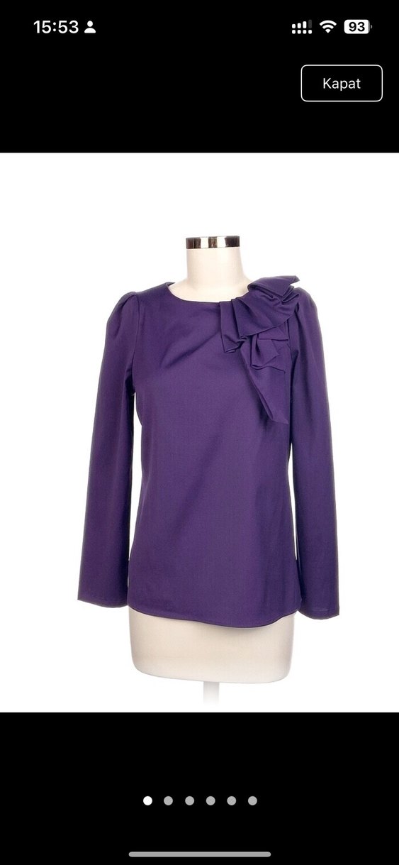 Mor renkli, uzun kollu ve yuvarlak yakalı bu bluz, omuzda fırfır detayı ile sade . Ofis kullanımı için uygundur. Etiketini kesmiştim