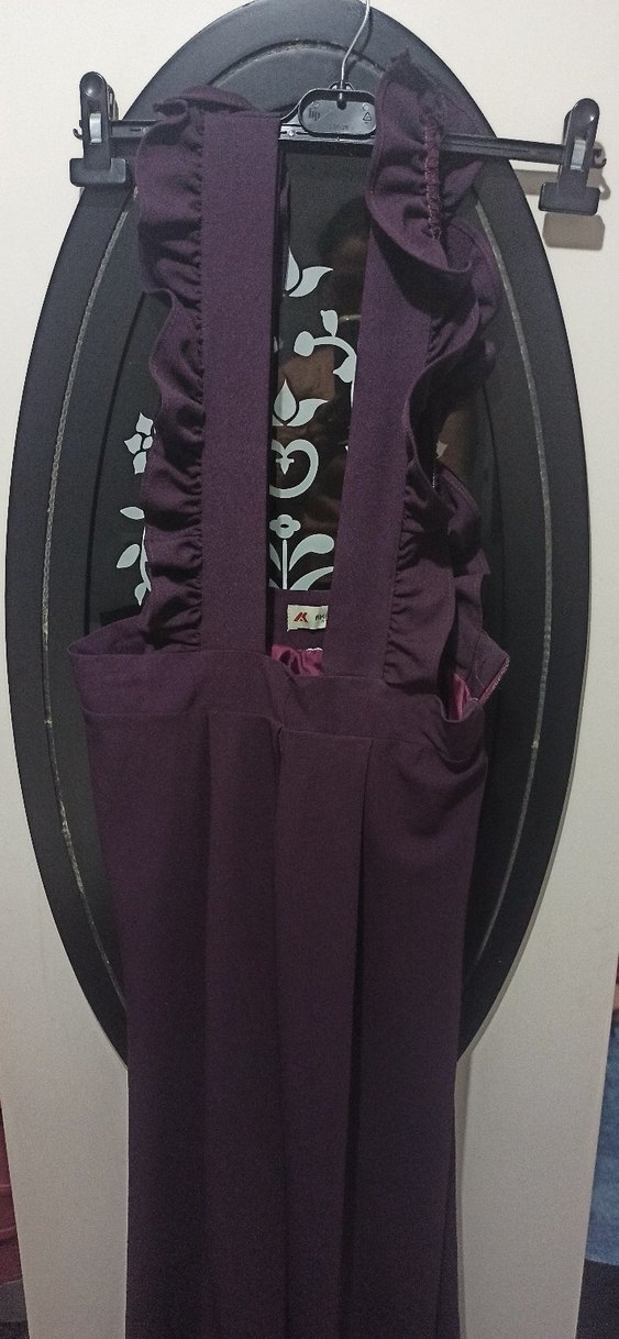 Mor Uzun Kollu Fırfırlı Tulum düğüm kombini abiye jile