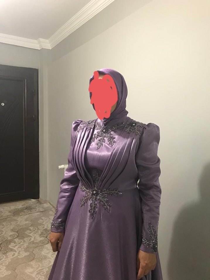 Mor Uzun Kollu Gotik Abiye Elbise