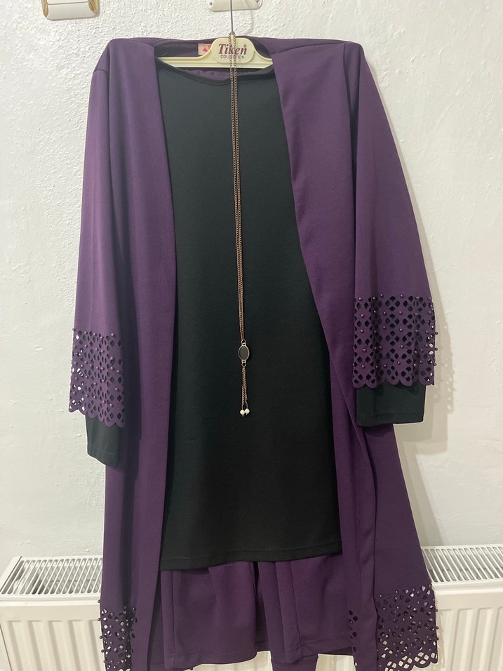 Mor renkte, uzun kollu ve bol kesim kadın elbisesi. Gotik tarzda, kollar ve etek ucu delikli detaylı, desensiz kumaştan yapılmıştır.