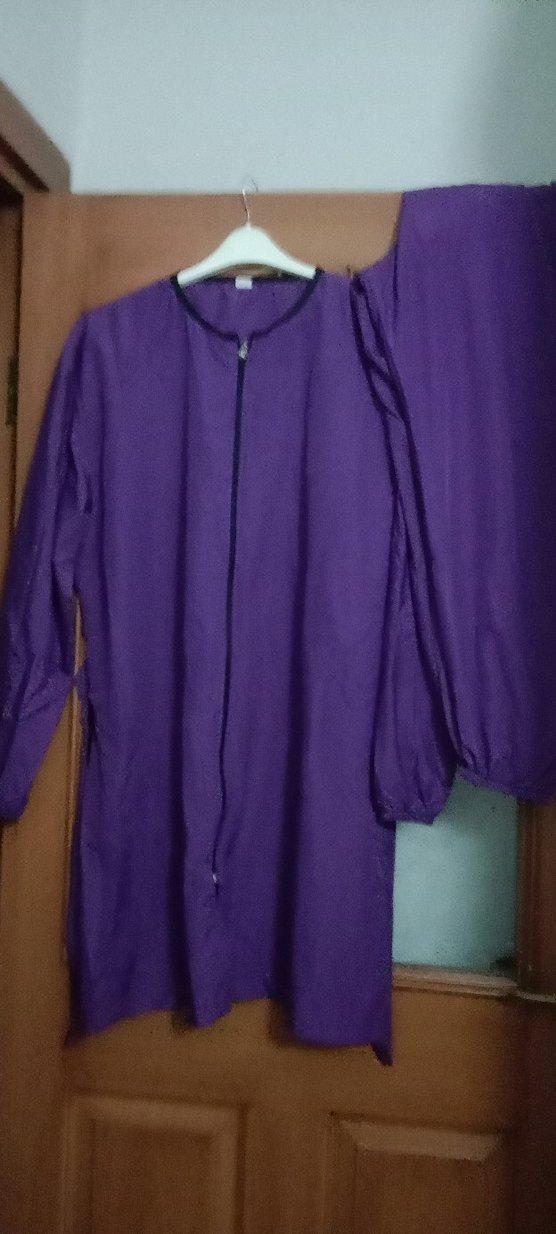 Mor renkli, uzun kollu, uzun boy kadın haşema. Minimalist ve normcore tarzda, fermuarlı ve desensiz tasarım.