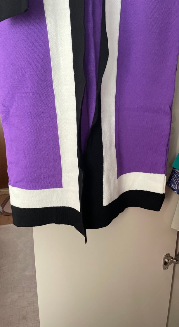 Mor, siyah ve beyaz renklerde, uzun kollu ve regular fit kadın hırka. Çağdaş athleisure tarzında, desensiz ve uzun boyda. ️