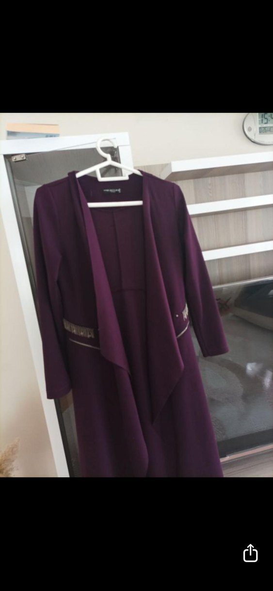 Mor, uzun kollu, şal yaka detaylı kadın kabanı, klasik ve minimalist tarz sunar. Sentetik kumaştan, günlük kullanıma uygundur.