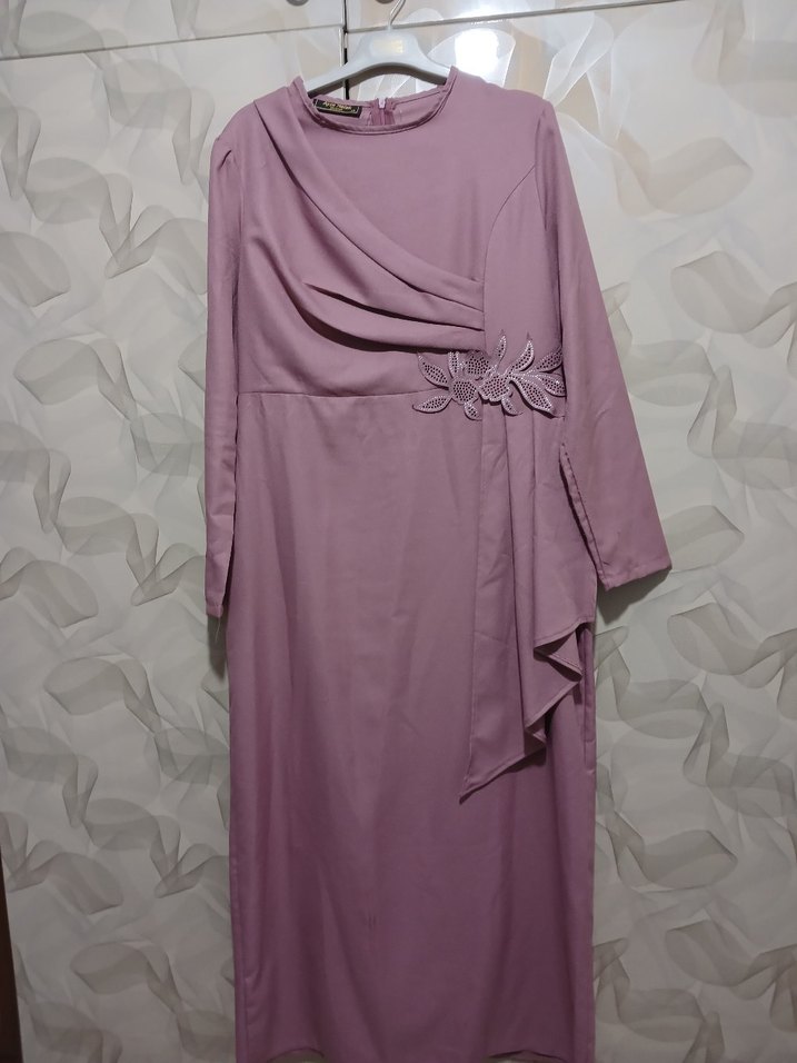 Mor Uzun Kollu Modern Klasik Kadın Elbise