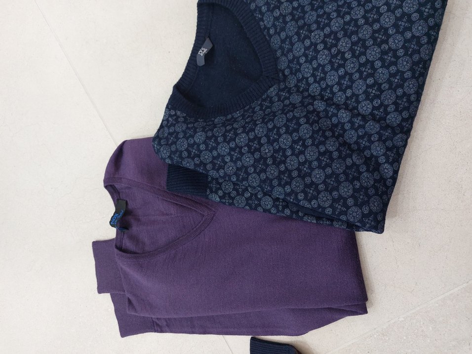 Bu erkek kazak, yumuşak yün kumaştan, uzun kollu, bisiklet yaka ve bol kesim olarak tasarlanmıştır. Düz koyu mor renkte olup, örgü dokusuna sahiptir. Günlük rahat kullanım için uygundur. ikili fiyattir