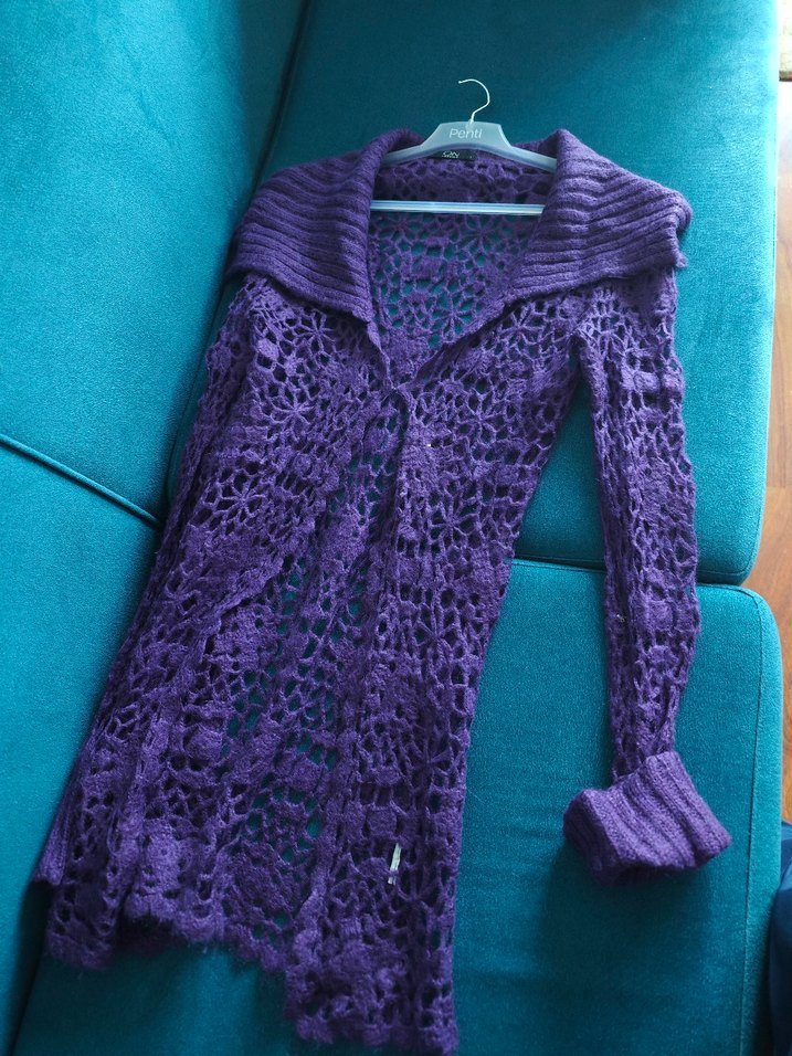 Mor Uzun Kollu Örgü Hamile Hırka