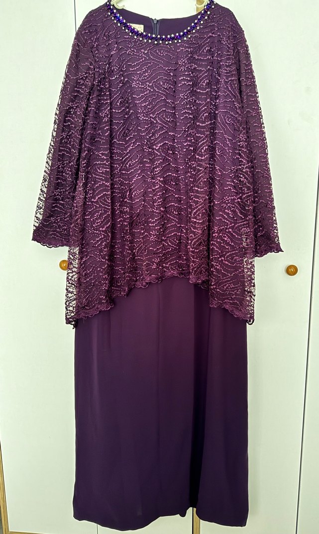 Mor renkli, uzun kollu, salaş kesim abiye elbise. Sorunsuzdur.140 cm boyu