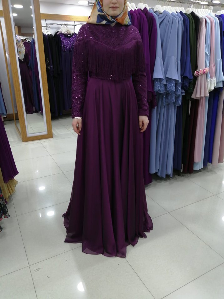 Mor Uzun Kollu Salaş Abiye Elbise