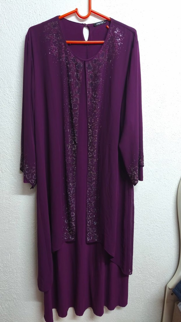 Mor Uzun Kollu Salaş Kadın Abiye Elbise