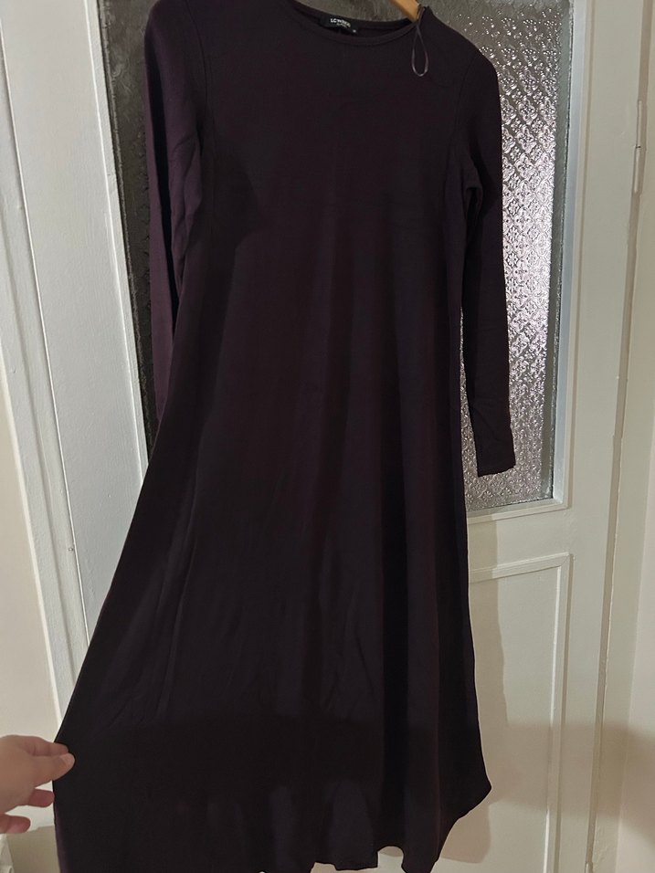 Mor renginde, uzun kollu ve salaş kesim kadın elbisesi. İpeksi dokusu ve drapeli yapısıyla günlük kullanıma uygun, sade ve mütevazı tarzda gothik bir modeldir. Uzunluğu 125cmdir.