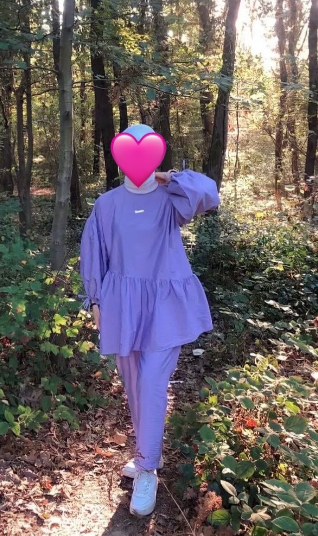 Mor Uzun Kollu Salaş Tunik takım
