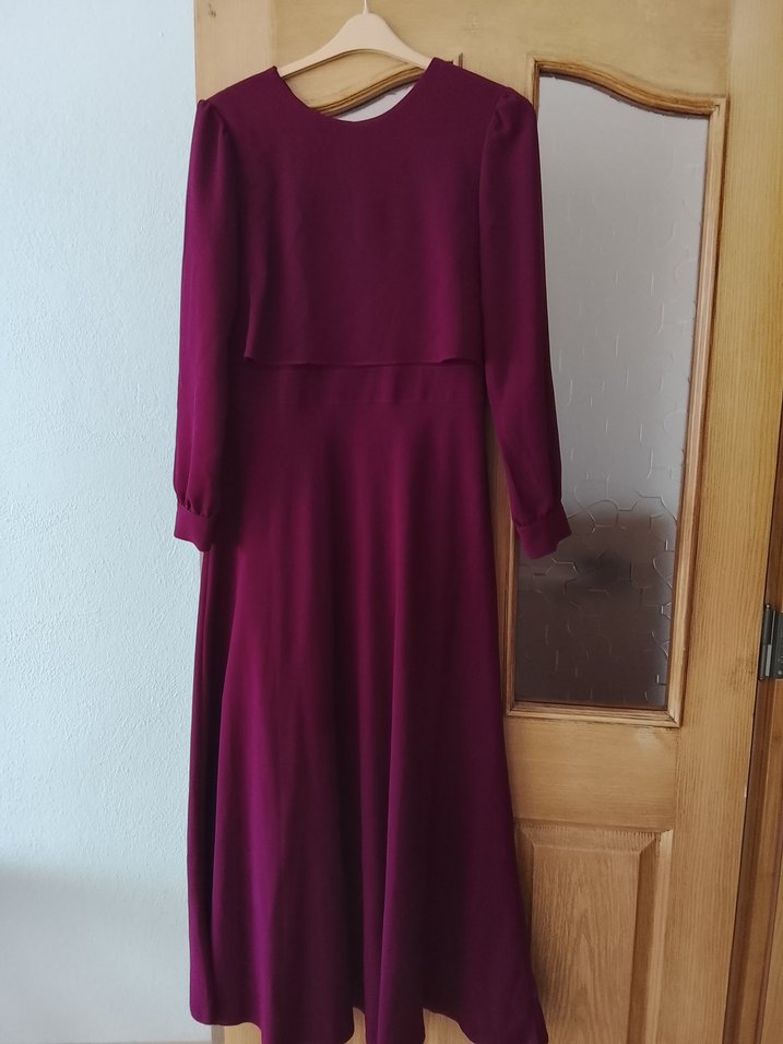 mor renkli, salaş kesim, drapeli uzun elbise. Yuvarlak yaka ve uzun kollu, parlak ve ipeksi kumaştan yapılmıştır. ürün bir iki kez kulanildi kusuru yoktur kumaşı çok kaliteli kaçırmayın