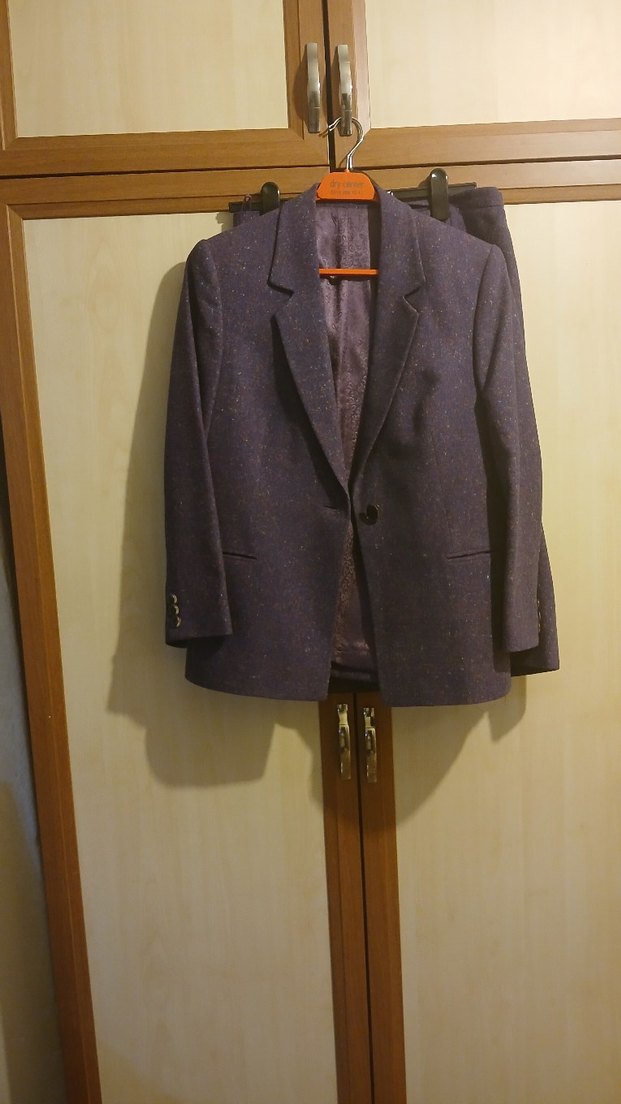 Mor renkli, uzun kollu kadın ceketi, klasik kesim ve düğmeli tasarıma sahiptir. Ofis kullanımı için uygundur. ️