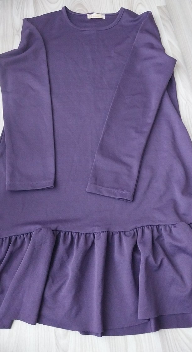 Mor renkte, bol kesim, uzun kollu tunik. Etek kısmında fırfır detayı ve yuvarlak yaka bulunur. Günlük kullanıma uygundur.