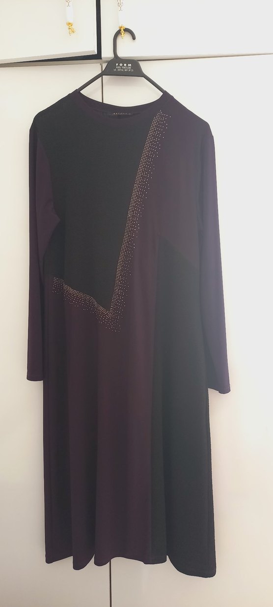 Mor renkte uzun kollu, V yakalı ve dökümlü kesime sahip takım. Sentetik kumaştan üretilmiş, günlük kullanıma uygun rahat bir model. esnek rahat tiril tiril bir kumaşı var kırışma yapmaz ütü istemez 2 kere giyildi