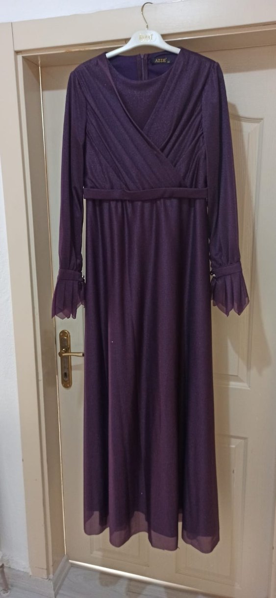 Mor Uzun Kollu V Yaka Uzun Elbise