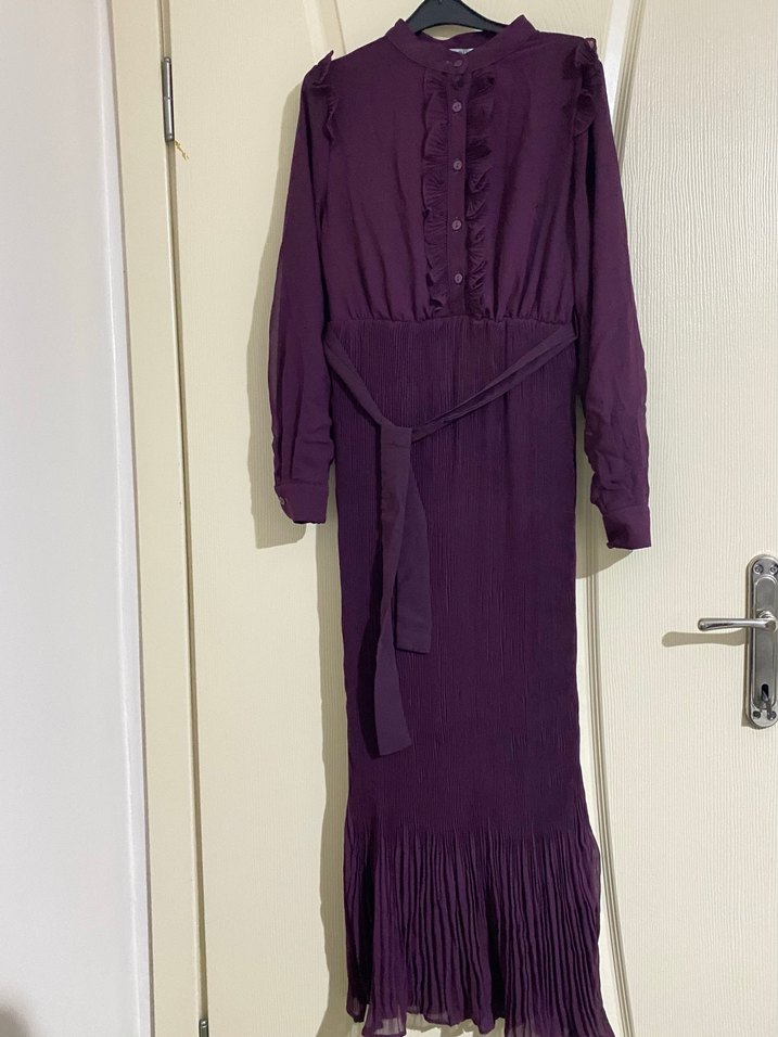 Mor Uzun Pilili Elbise