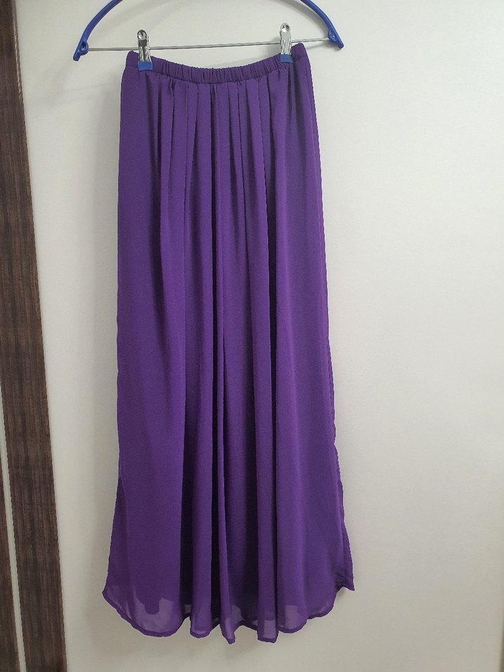 Bu koyu mor uzun etek, şifon kumaştan yapılmış salaş ve drapeli tasarıma sahiptir. Minimalist bohem tarzını yansıtır, günlük kullanım için uygundur. beli lastiklidir. 36-38 beden uyumludur.