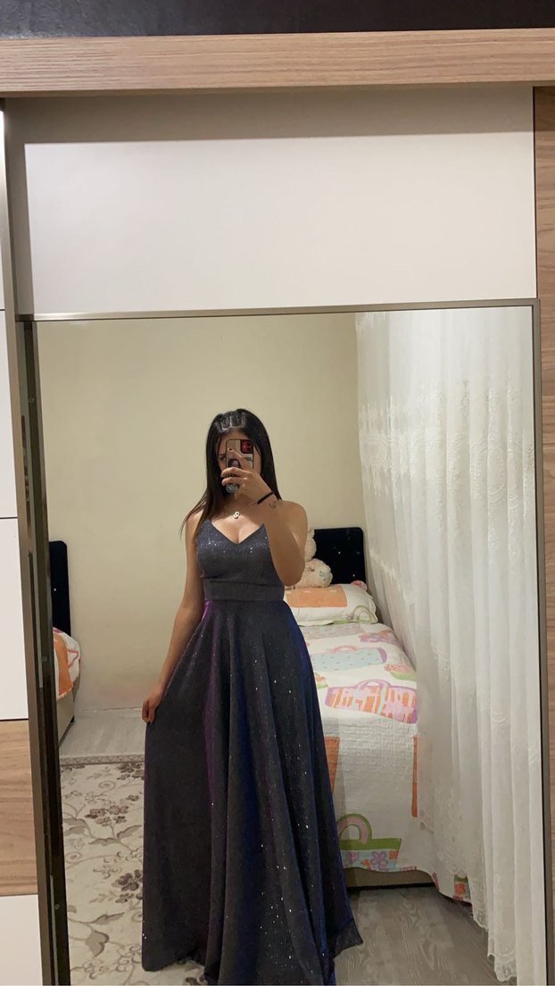 Mor V Yaka Drapeli Midi Abiye Elbise