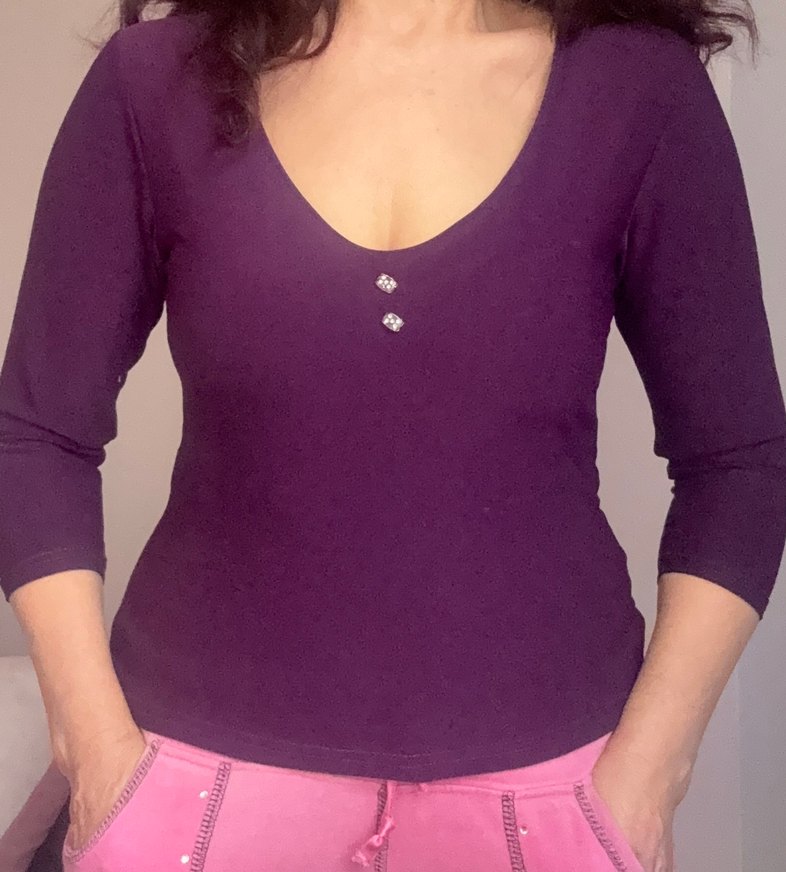 Mor V Yaka Düğmeli Bluz