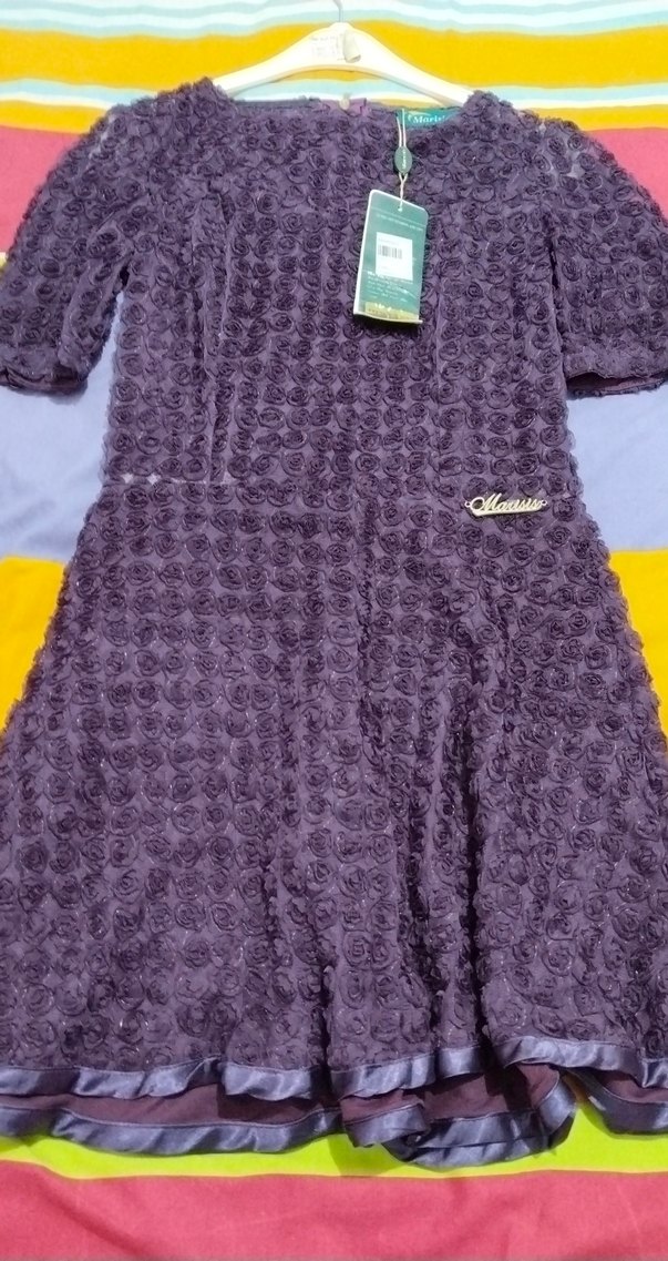Mor renkte, kısa kollu ve fırfırlı detaylara sahip 3 boyutlu astarlı güllü triko elbise. Rahat kesimi ve yumuşak dokusu günlük kullanım için uygundur. 1 saatliğine giyildi