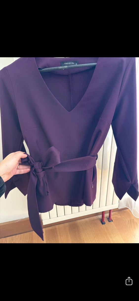 Mor V Yaka Kemerli Kadın Bluz