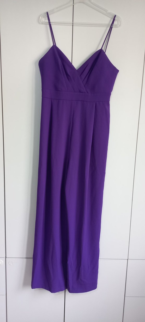 Mor renkli, kolsuz, V yakalı uzun tulum. İnce kesimli ve dökümlü, ipeksi kumaştan yapılmış, sade ve minimal bir tarz sunar. Romantik akşamlar için uygundur.