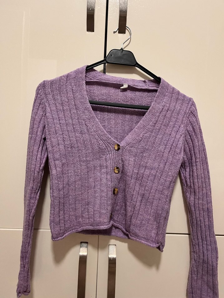 Mor V Yaka Örgü Kadın Hırka