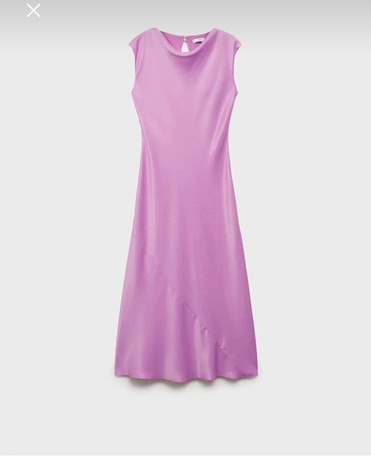 Mor renkli, midi boy kadın elbisesi, ipeksi kumaş ve rahat kesim.Ben hamileyken arkadaşımın düğünü için almıştım bir kez giydim xxl beden giydim 98 kiloydum ona rağmen çok rahat etmiştim