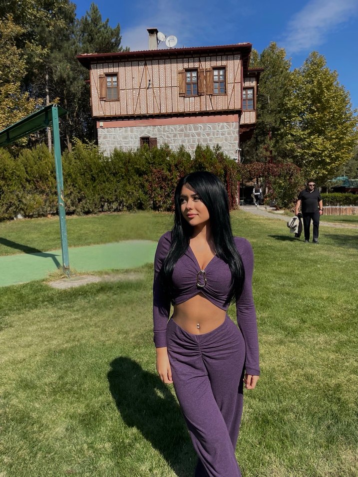 Koyu mor renkte, V yakalı ve uzun kollu, vücuda oturan kadın eşofman takımı. Uzun boy ve düz desenli, şık ve rahat bir görünüm sunar.