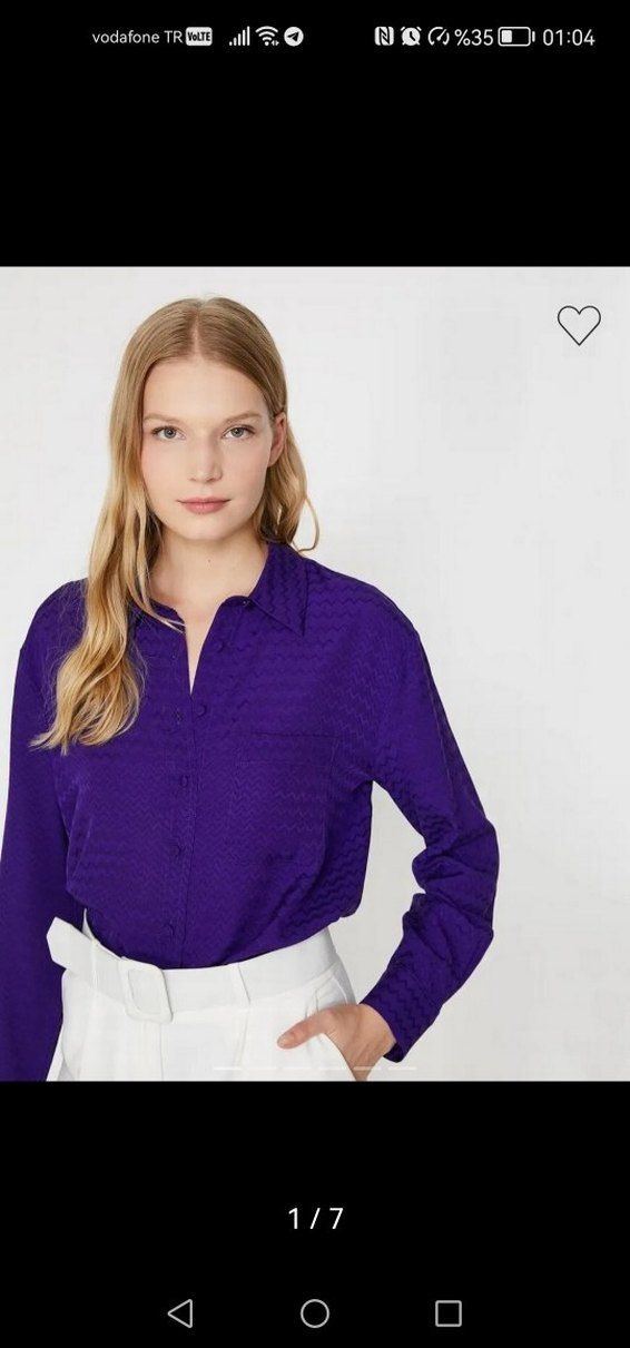 Mor V Yaka Uzun Kollu Kadın Gömlek