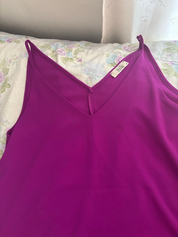 Mor renkli, V yakalı ve kolsuz atlet. Rahat ve bol kesimdir, normal midi boyundadır. Yumuşak pastel tonlarda rahat kullanım sağlar.
