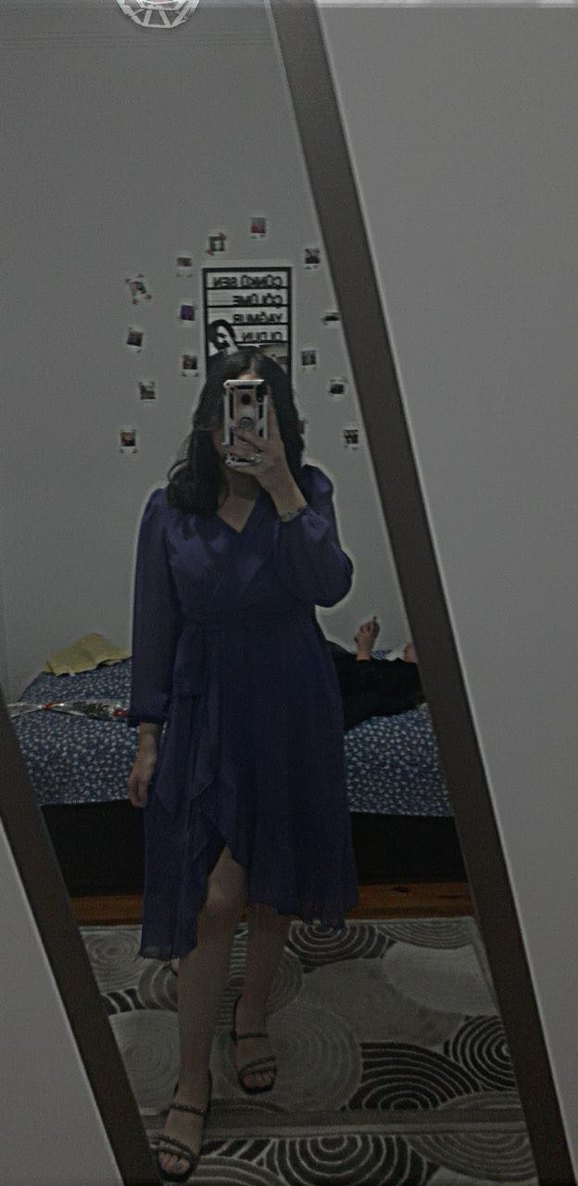 Mor renkli, ipeksi dokulu midi boy, bol kesim elbise. V yaka ve uzun kollu, beli kuşaklıdır. Günlük kullanıma uygundur, trend sokak tarzı için idealdir.