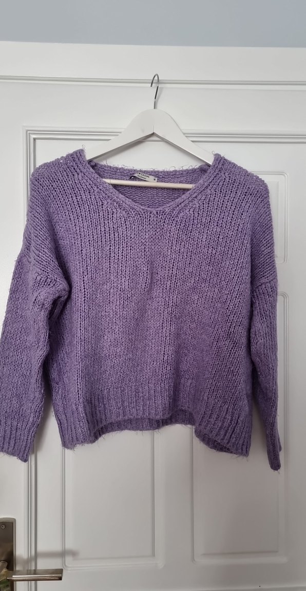 Mor V Yakalı Örgü Kazak