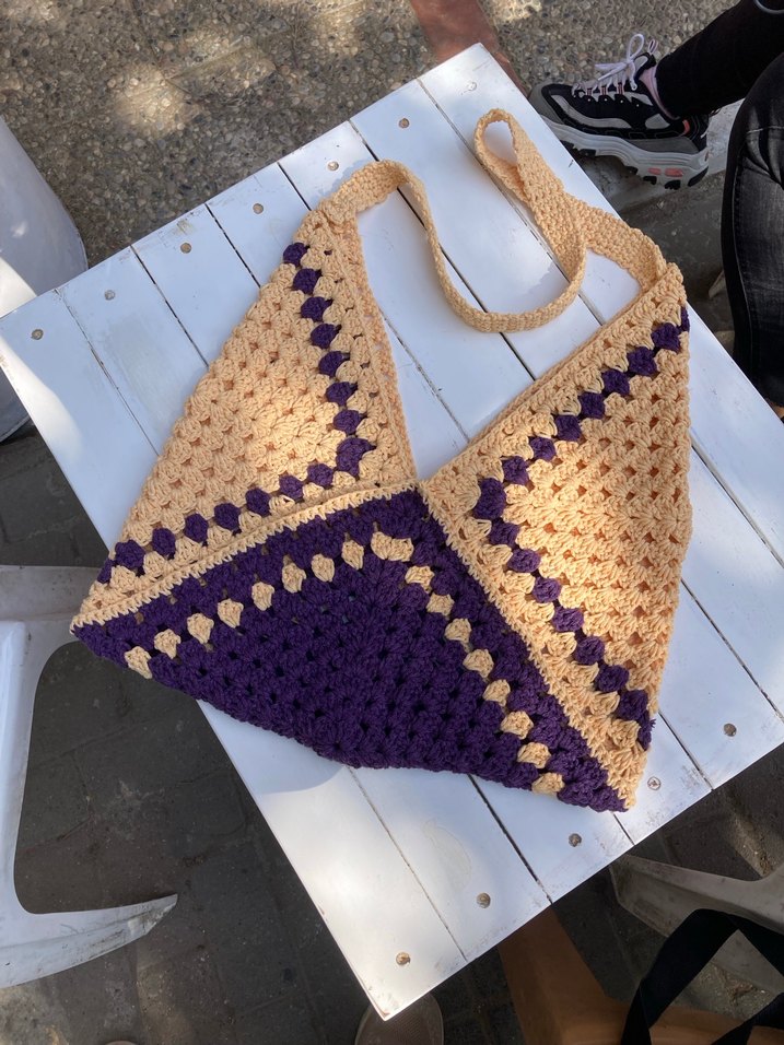 Mor ve Bej Örgü Bohem Kadın Çanta