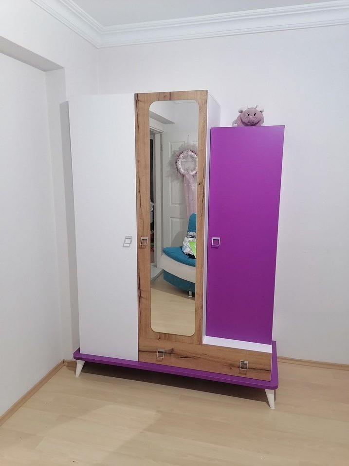 Mor ve Beyaz 3 kapılı çok kullanışlı Çocuk Dolabı