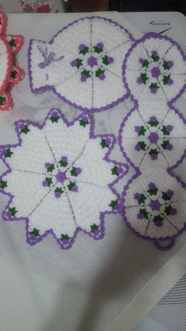 Mor ve yeşil çiçek detaylı, beyaz el yapımı geleneksel banyo lifi