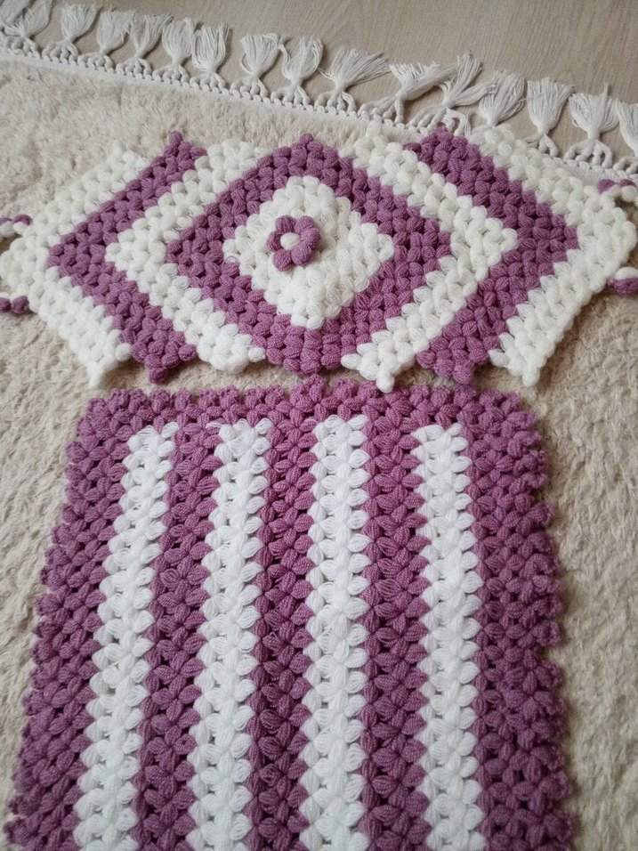 Pastel mor ve beyaz renklerde, el yapımı dokulu banyo süngeri, banyonuza yumuşak bir dokunuş katar.