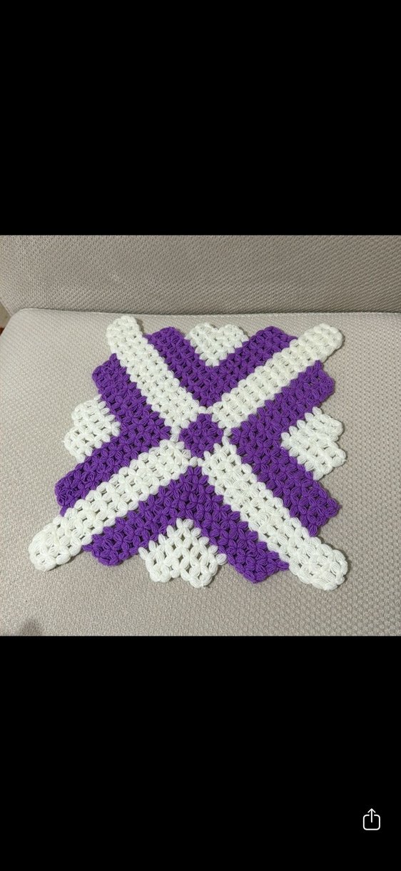 Mor ve beyaz renklerde, dokulu desenli örgü banyo süngeri, nazikçe peeling ve temizlik sağlar.