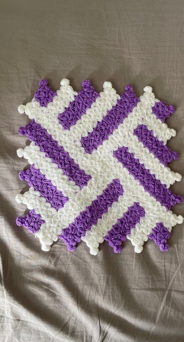 Mor ve beyaz renklerin birleşimiyle oluşturulmuş, yumuşak dokulu banyo lifi.
