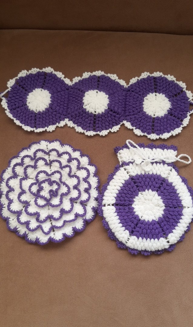 Mor ve beyaz renkli, yuvarlak, çiçek ve uzun şekilli üç parçadan oluşan cegizlik bayo lifi