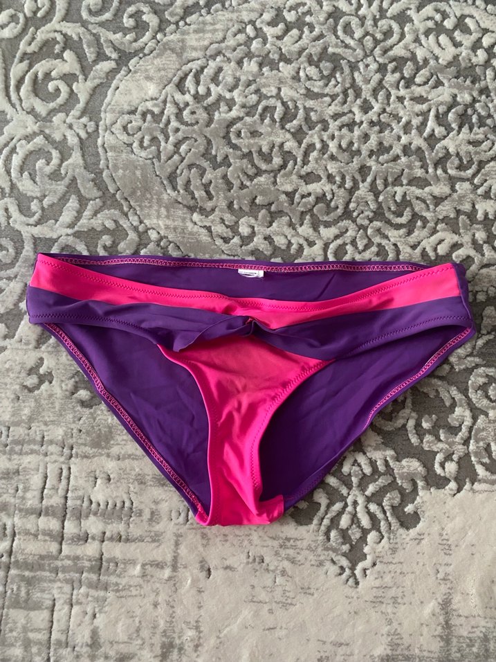 Mor ve fuşya renklerin buluştuğu, elastik kumaştan yapılmış fit kesim bikini altı. Strappy tasarımıyla plajda dikkat çeker.