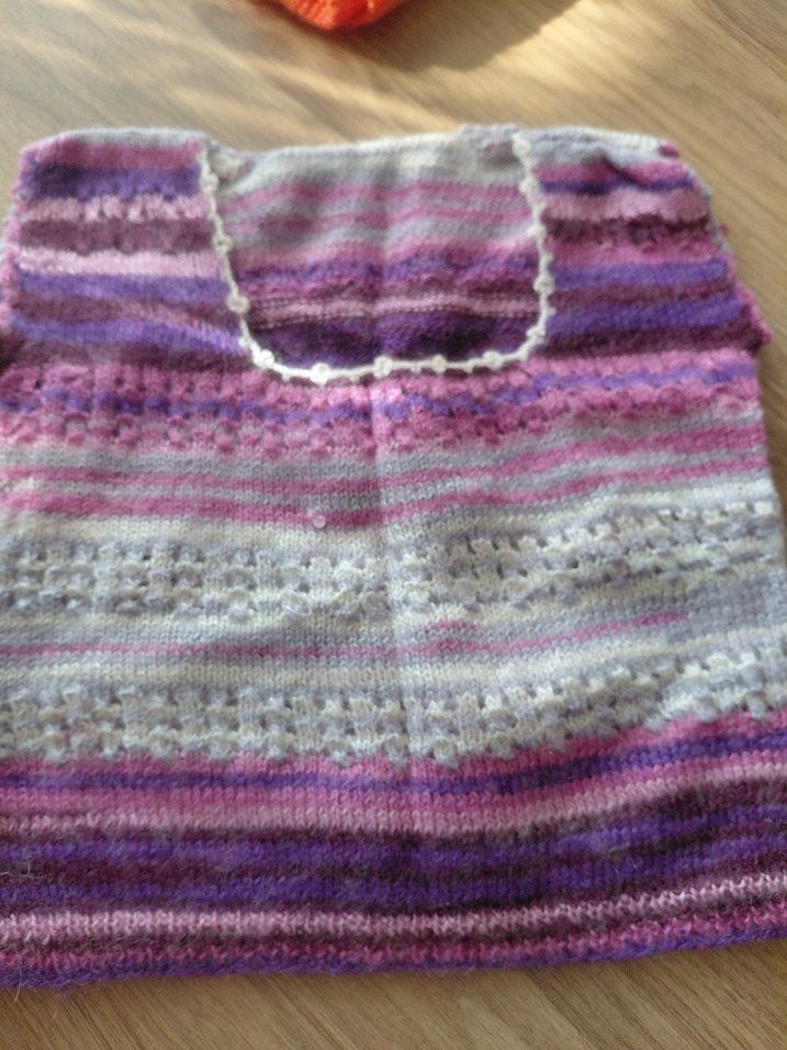 Mor ve gri tonlarda çizgili, yumuşak kumaştan yapılmış bebek önlüğü, yemek zamanı koruması sağlar.
