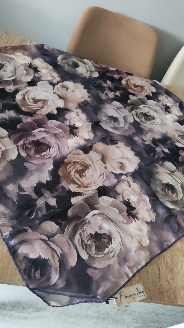 Mor ve Gri Çiçek Desenli soft pamuk eşarp