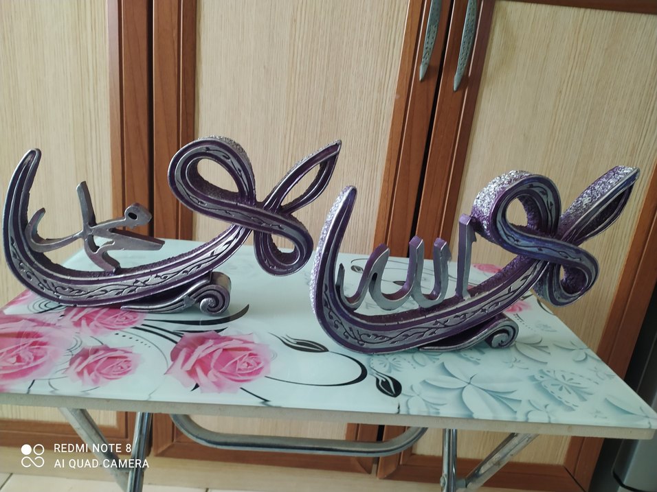 Mor ve gri renklerde, detaylı desenlere sahip dekoratif figürin. Parlak yüzeyi ve sanatsal kıvrımlarıyla ev dekoruna uygundur. ️