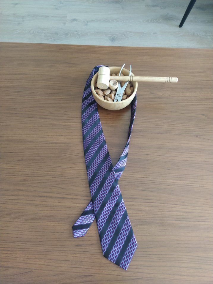 Mor ve gri diagonal çizgili klasik erkek kravat, iş ortamları için uygun, yumuşak dokulu.