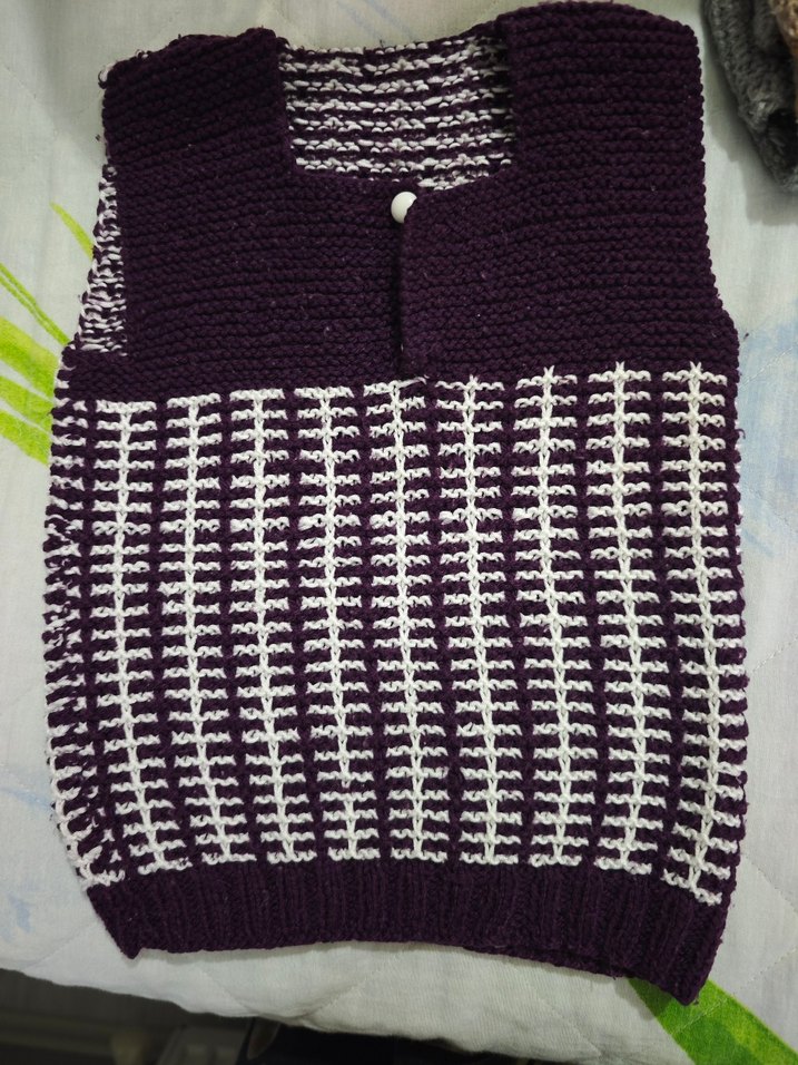 Mor ve gri renklerde, V yakalı, normal boyda, rahat kesim örgü Desensiz, günlük kullanım için uygun rahat bir tasarıma sahiptir.