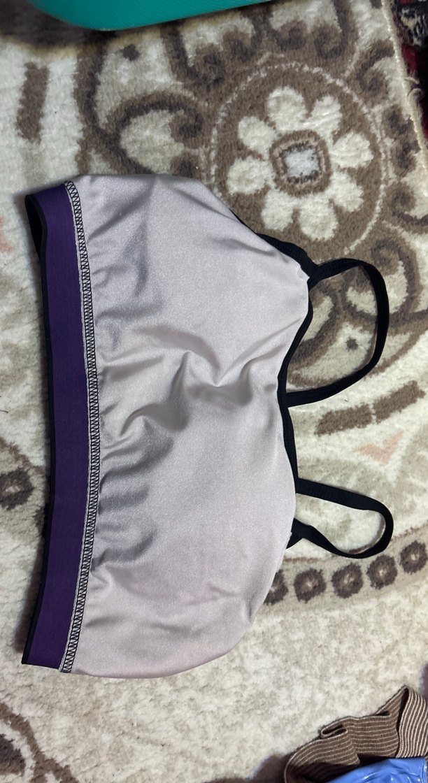 36 38 uyumlu Mor ve gri renkte, ince siyah askılı, desensiz ve orta boy athleisure sütyen. Sokak tarzına uygun rahat bir tasarımı vardır.