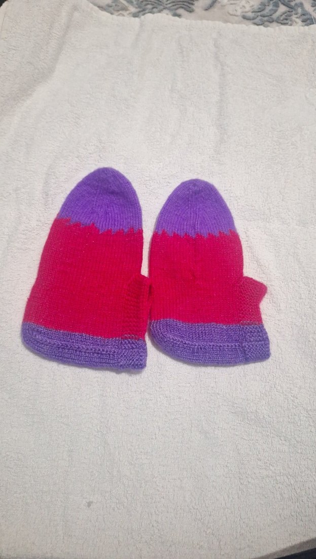 Mor ve kırmızı renklerde, yumuşak örgü kumaştan yapılmış kız çocukları için örgü patik