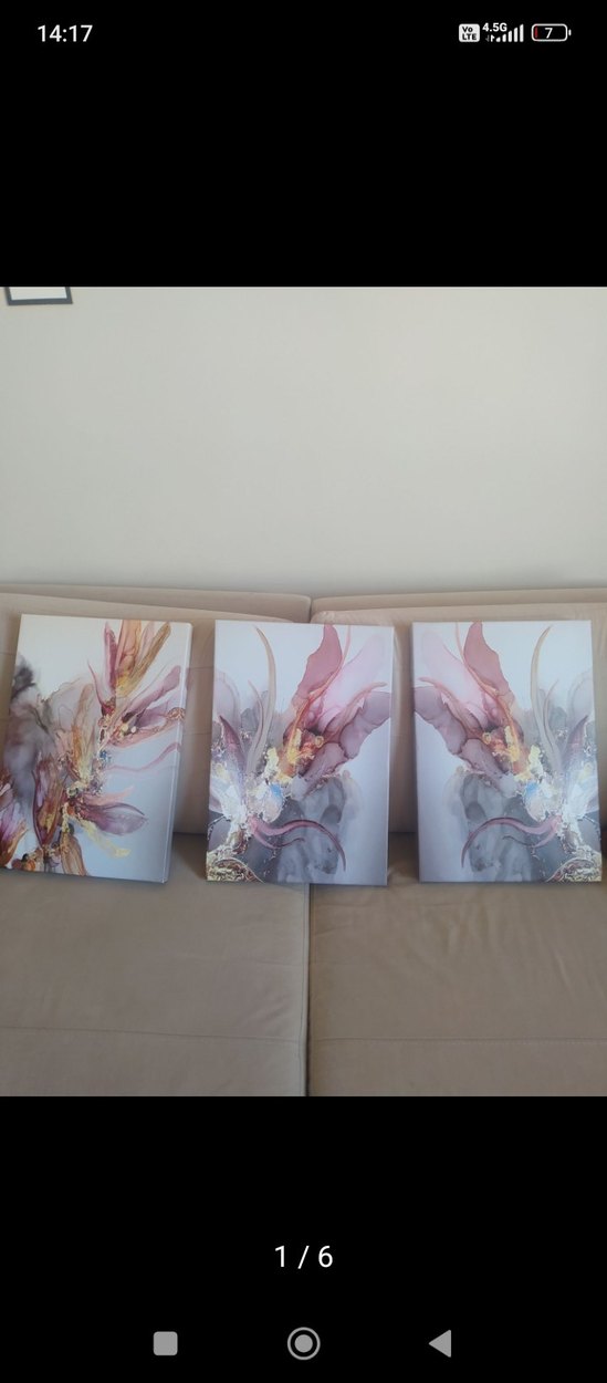 mor ve lila Tonlarda Modern Üçlü Soyut Tablo